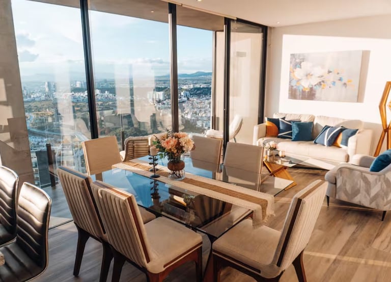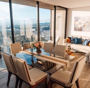 Relájate en un Pent house de lujo ubicado en la ciudad de Queretaro con el maximo lujo con un diseño exclusivo, diseñado para ofrecerte la maxima comodidad durante tu estancia en la ciudad. cuenta con alberca infinita , jacuzzi, gym, sala de cine